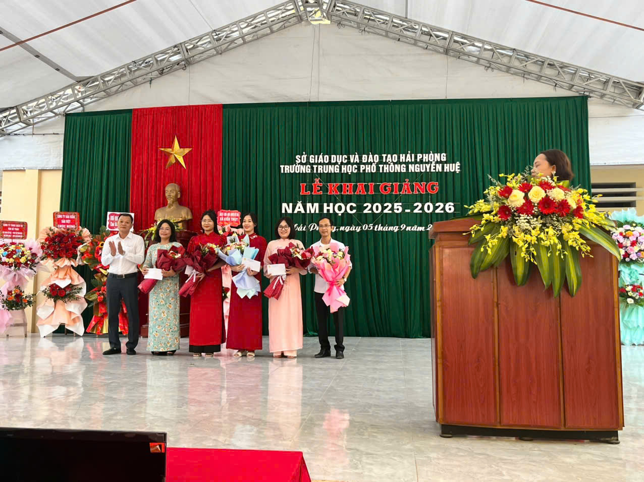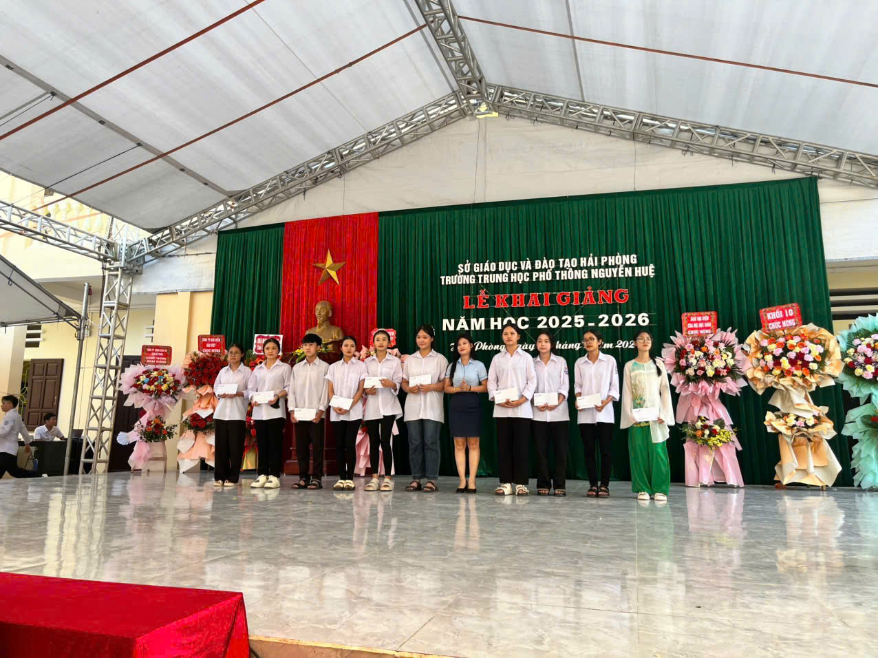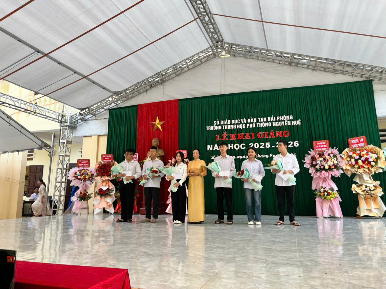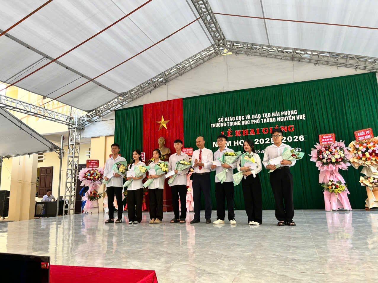 Sáng ngày 05/9/2025, hòa chung không khí tưng bừng, phấn khởi của cả nước, trường THPT Nguyễn Huệ đã long trọng tổ chức Lễ Khai giảng năm học 2025 – 2026.